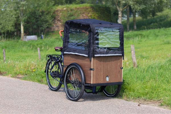 Gratis RegenhuifBij de aankoop van deze bakfiets ontvang je als speciale actie een gratis regenhuif voor over de bak. Deze huif beschermt kinderen, huisdieren of spullen tegen de regen en vermindert ook de invloed van de wind.