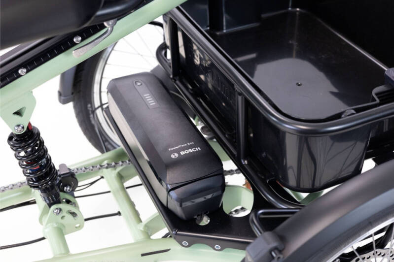 De accu van deze elektrische driewieler is boven uw boodschappenmand geplaatst. Hierdoor kunt u deze zonder te hoeven bukken, gemakkelijk uitnemen om eventueel binnen op te laden of aan de lader te zetten terwijl de accu zich nog in de fiets bevindt. Er is nameiljk een extra oplaadpoort op de fiets gemaakt op hoogte zodat het stekkeren erg gemakkelijk gaat. De accu is standaard al 545Wh sterk en dat zorgt ervoor dat u lang kunt genieten op één acculading, tot ruim 120km! Wilt u lange afstanden maken op één acculading? Dan kunt u ervoor kiezen om een grotere accucapaciteit te kiezen.