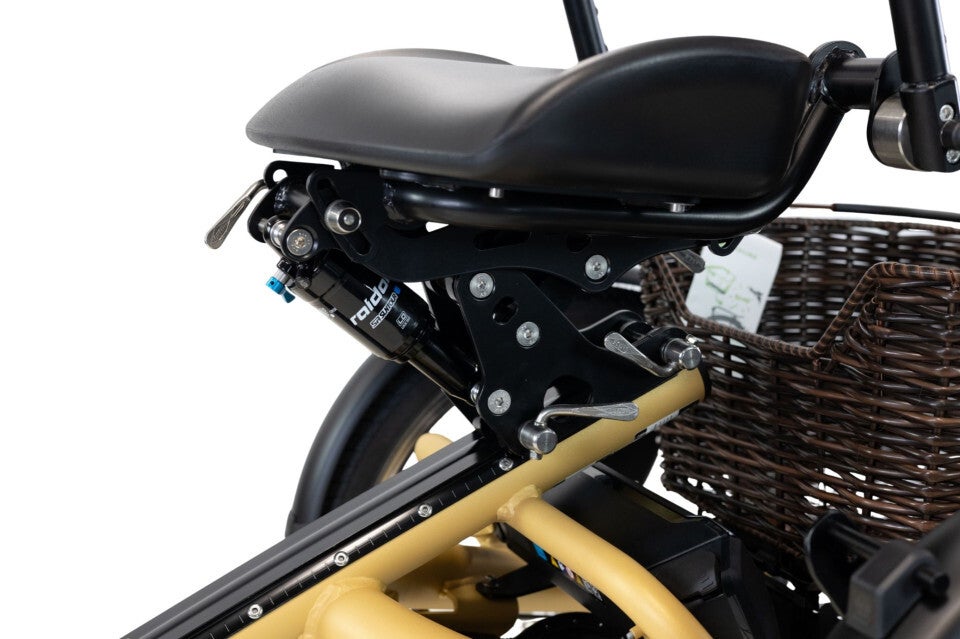 De comfortabele stoel is zeer eenvoudig verstelbaar in hoogte en u kunt ook de hoek van de leuning aanpassen naar persoonlijke voorkeur. Een goede stevige zit is een belangrijke basis om u veilig te bewegen tussen het verkeer. Wilt u graag stoppen? Dan zet u één voet aan de grond terwijl u lekker kunt blijven zitten.
